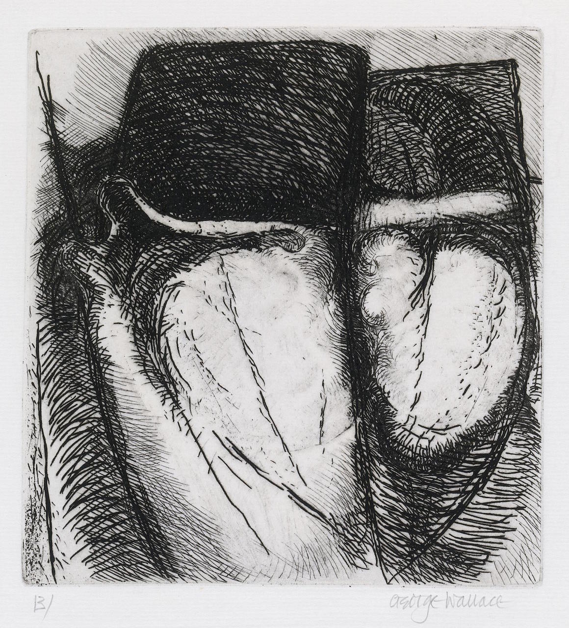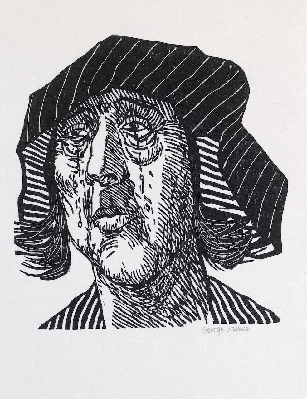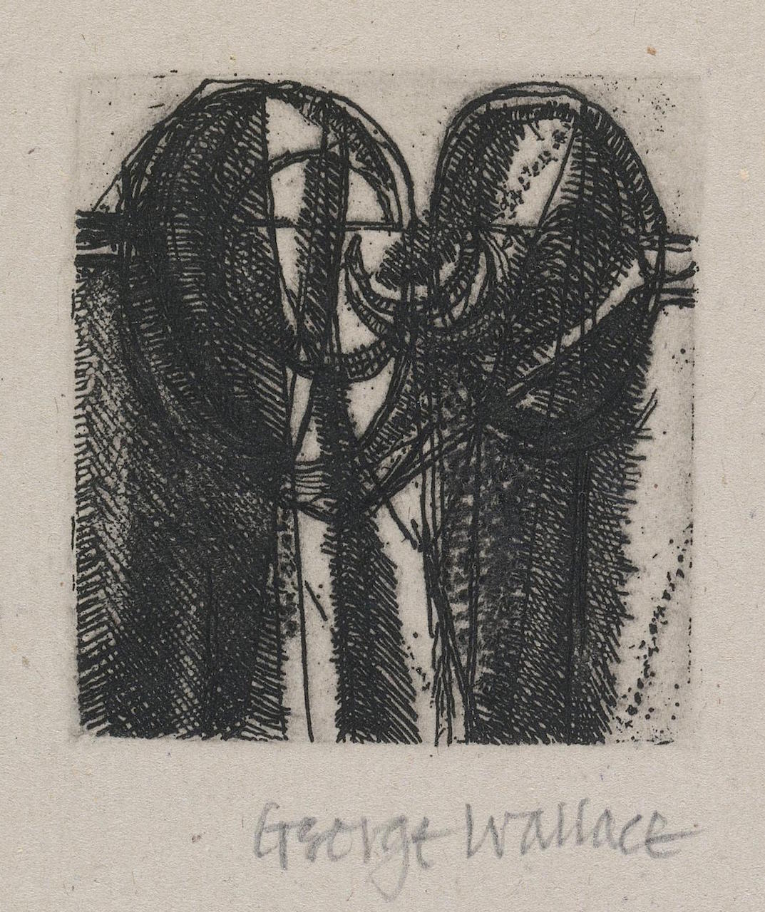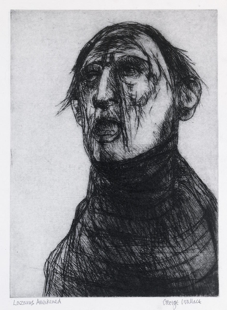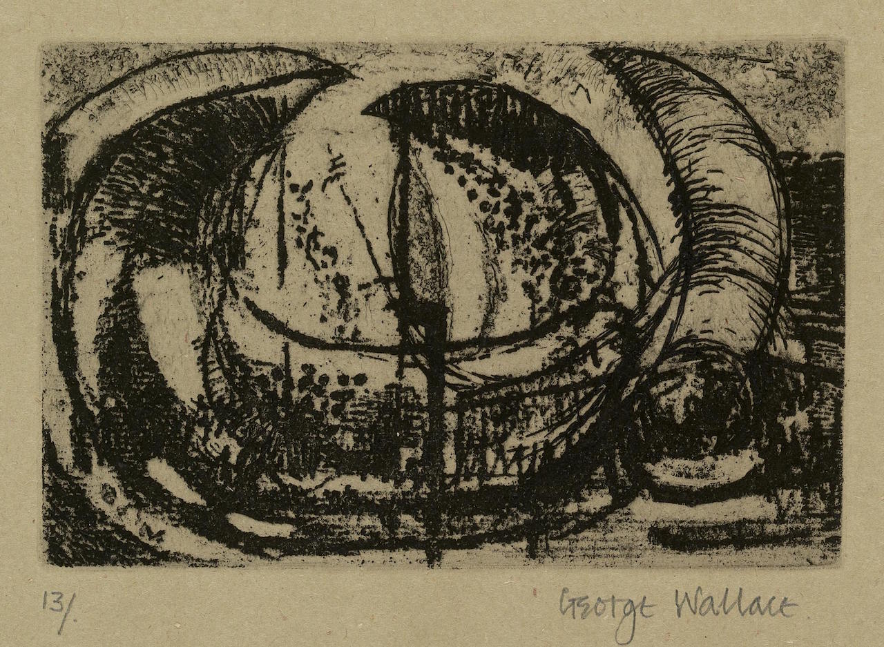 image ⓒ National Gallery of IrelandPit, date unknown, woodcut, 36 x 45 cm.#70 - Self Portrait, 1974, woodcut, 33.8 x 16.2 cm.#83 - Weeping Woman, 1983, woodcut, 30.8 x 27.8 cm.#83 - Weeping Woman, 1983, woodcut printed in redGeorge Wallace, Sculpture & Graphics Exhibition Poster - Hamilton Artist's Inc., 1983, woodcut