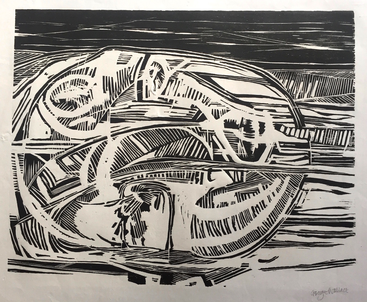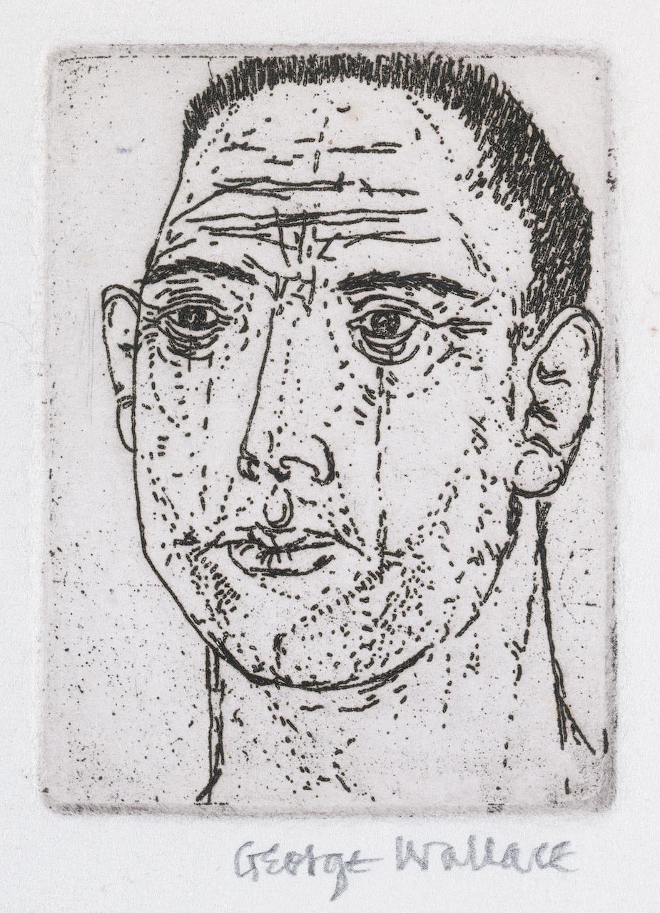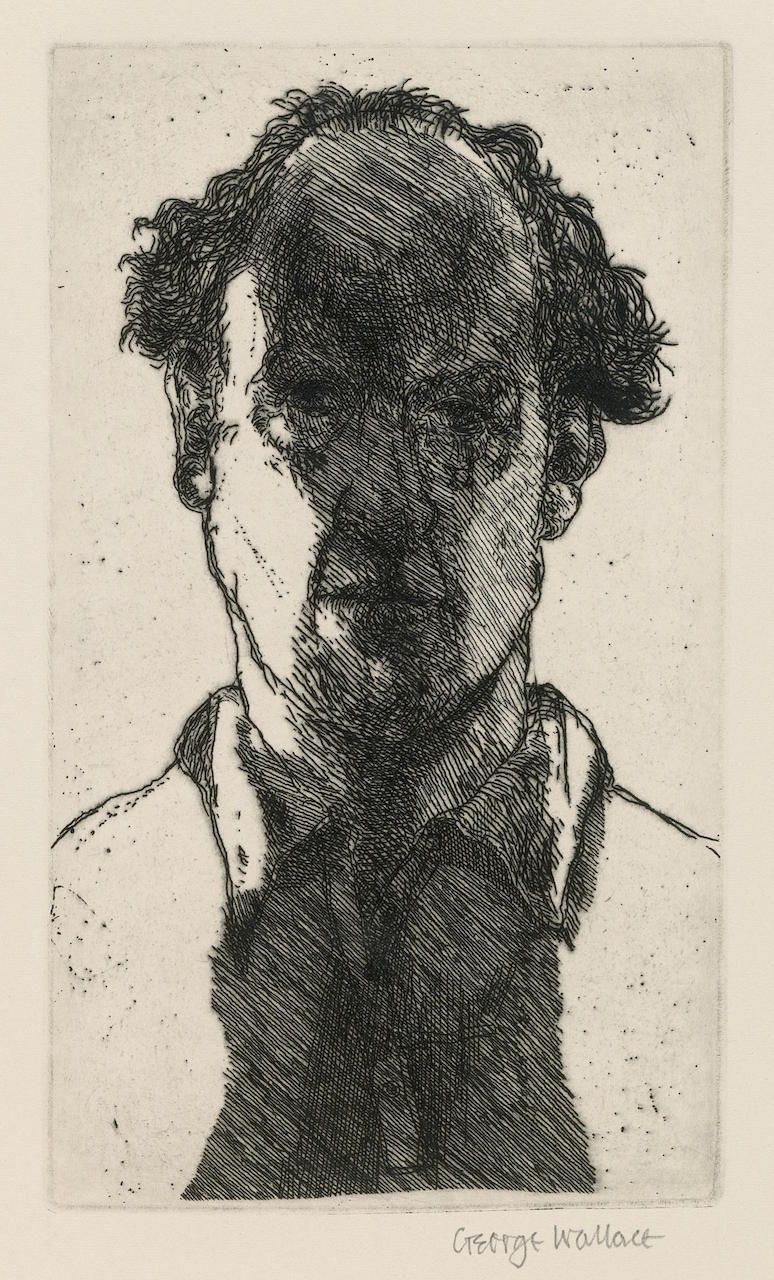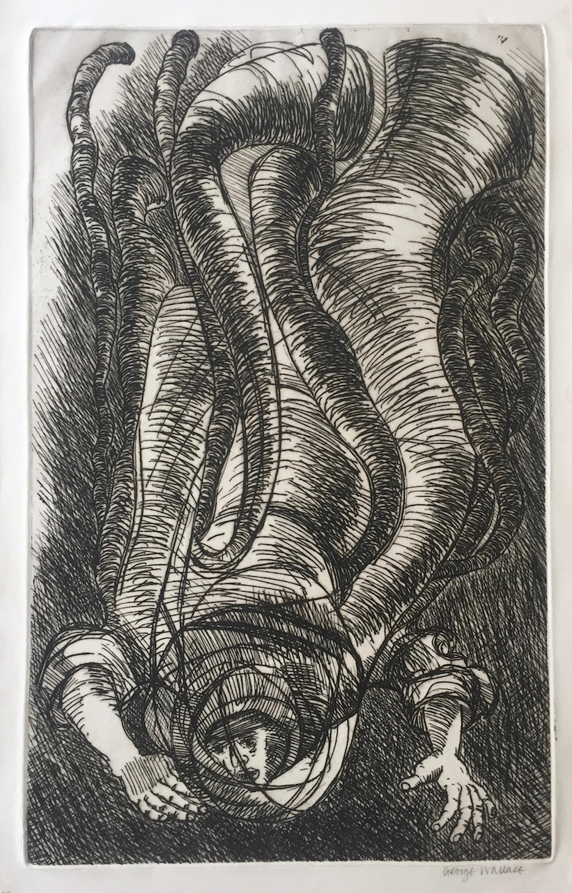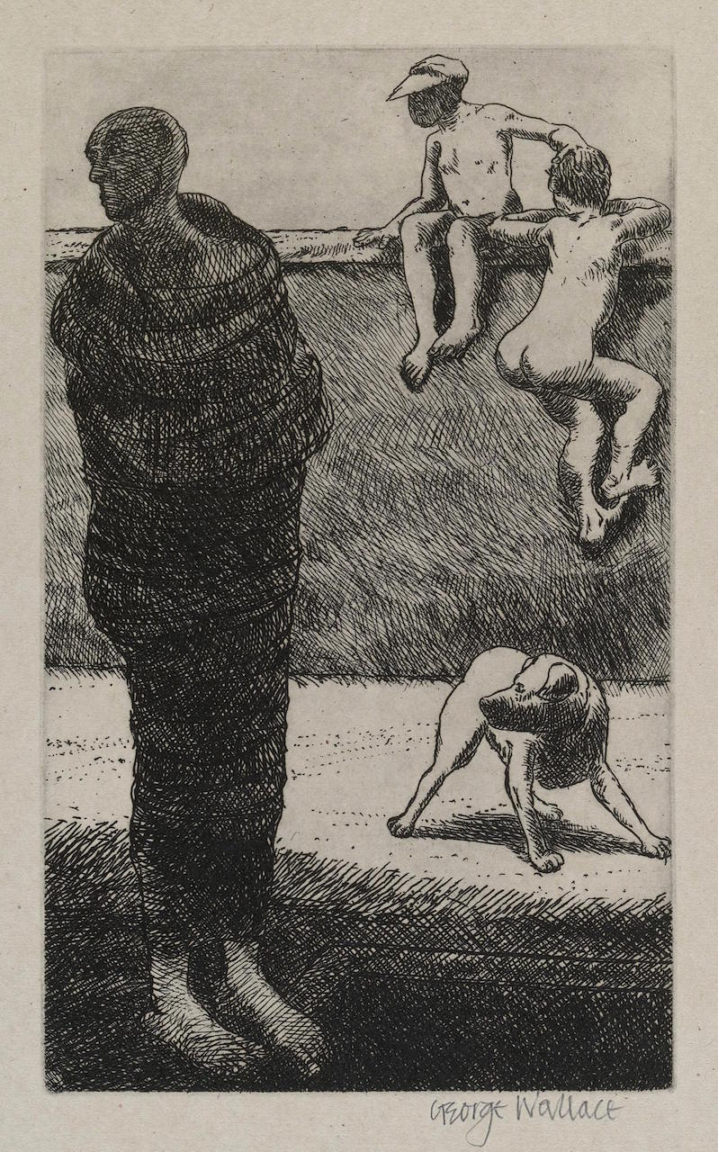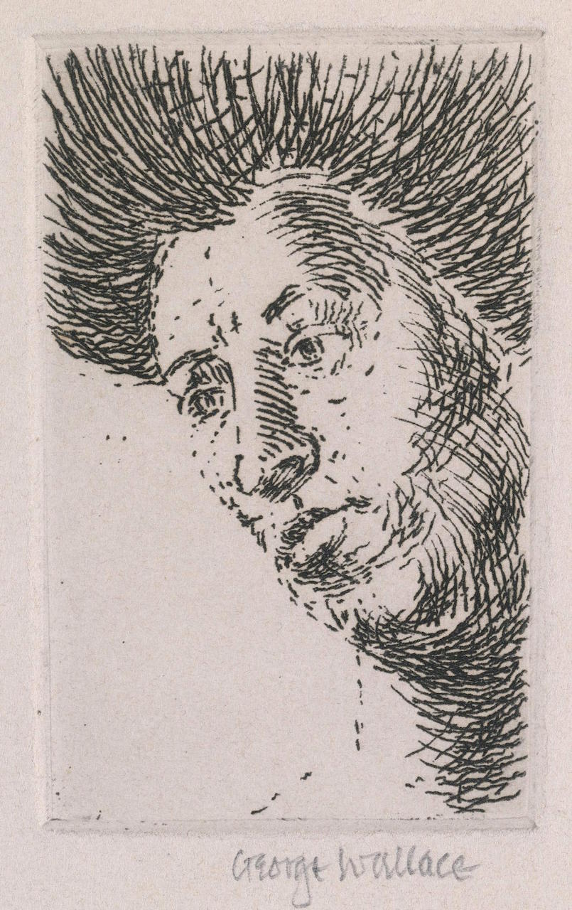 image ⓒ National Gallery of IrelandPit, date unknown, woodcut, 36 x 45 cm.#70 - Self Portrait, 1974, woodcut, 33.8 x 16.2 cm.#83 - Weeping Woman, 1983, woodcut, 30.8 x 27.8 cm.#83 - Weeping Woman, 1983, woodcut printed in redGeorge Wallace, Sculpture & Graphics Exhibition Poster - Hamilton Artist's Inc., 1983, woodcut