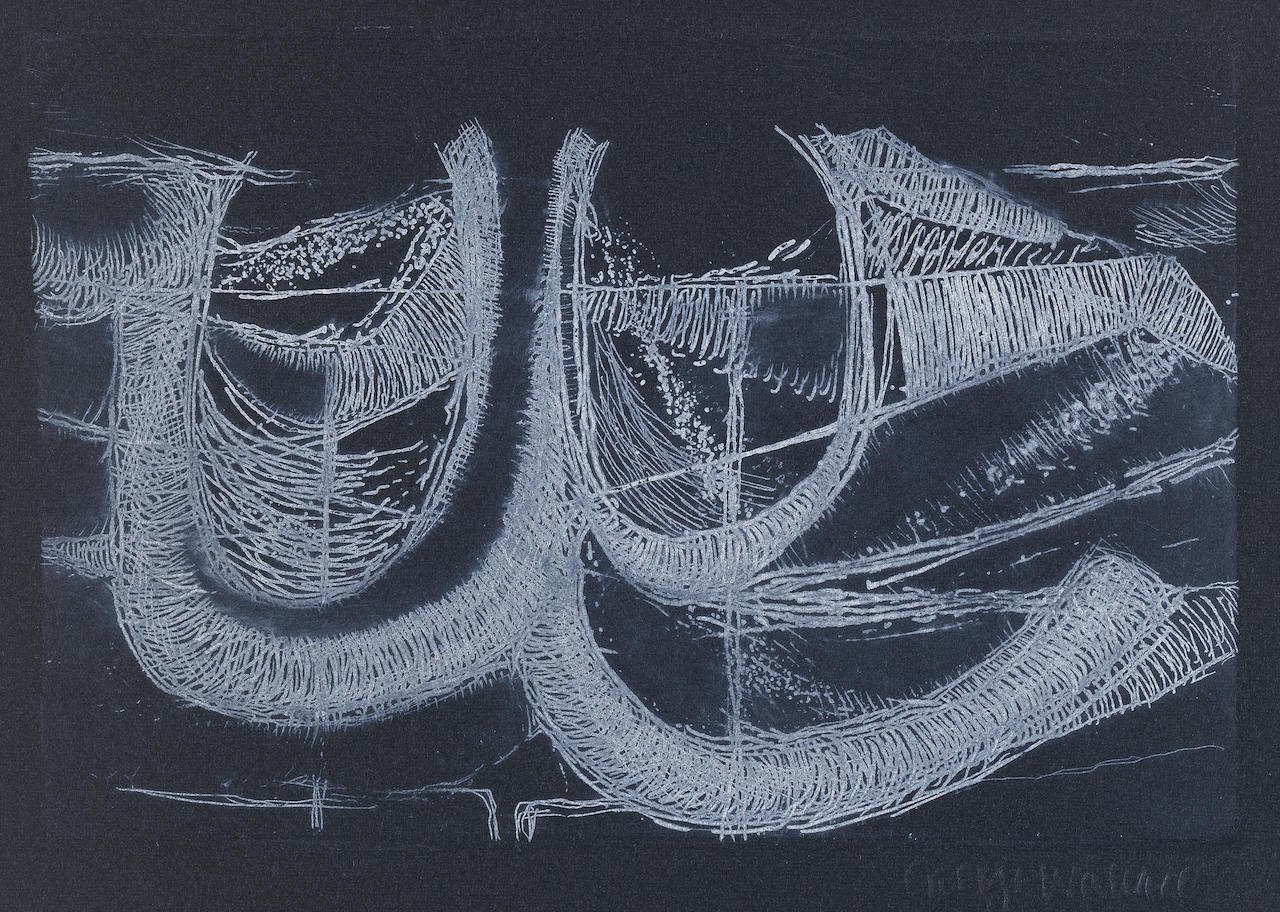 image ⓒ National Gallery of Ireland#109ii - Wind, 1992, etching, white on black paper, 13.9 x 21 cm. —