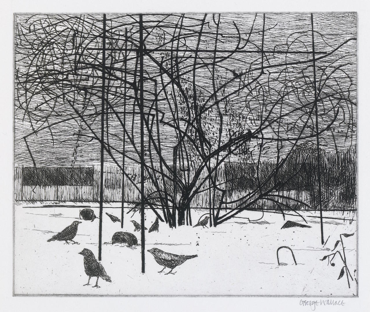 image ⓒ National Gallery of Ireland#117 - Forsythia in the Snow, 1993, etching, 25.4 x 30.4 cm. —