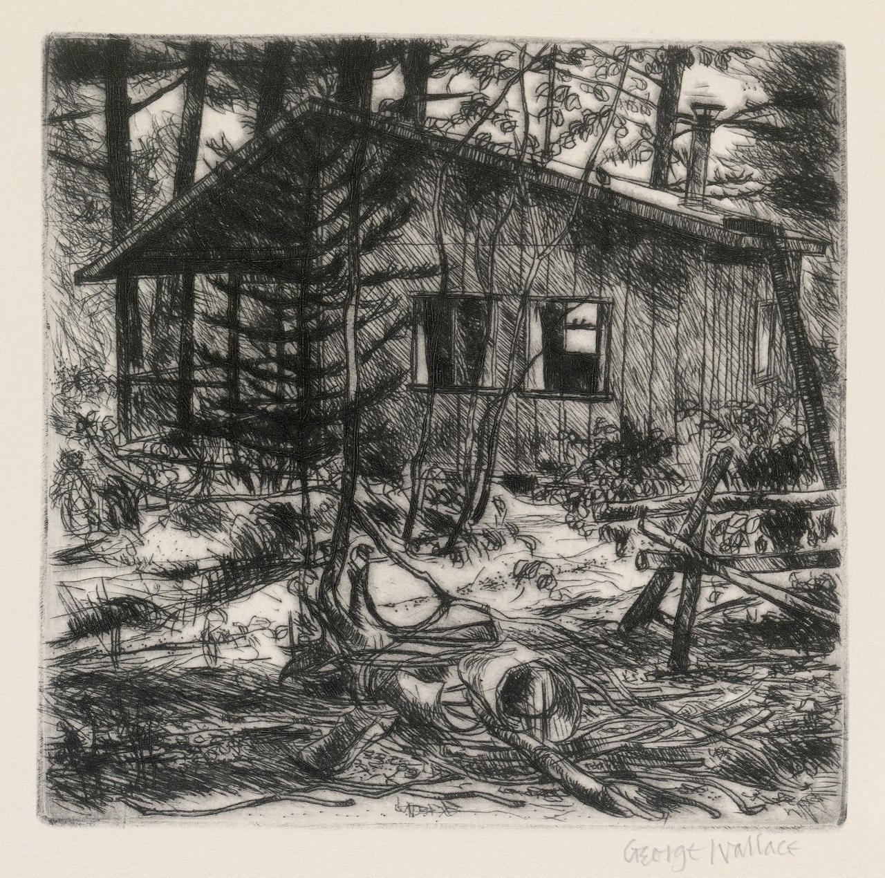 image ⓒ National Gallery of Ireland#136 - The Cabin at Carlyle Lake, 1994, drypoint, 19 x 19 cm. —