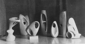 George Wallace had carved several small sculptures in wood in the late 40s, influenced by the work of Barbara Hepworth. These beautifully made ‘objets’ indicate an early interest in three dimensional work, but by the end of the following decade Wallace’s sculpture had taken a radically different direction.