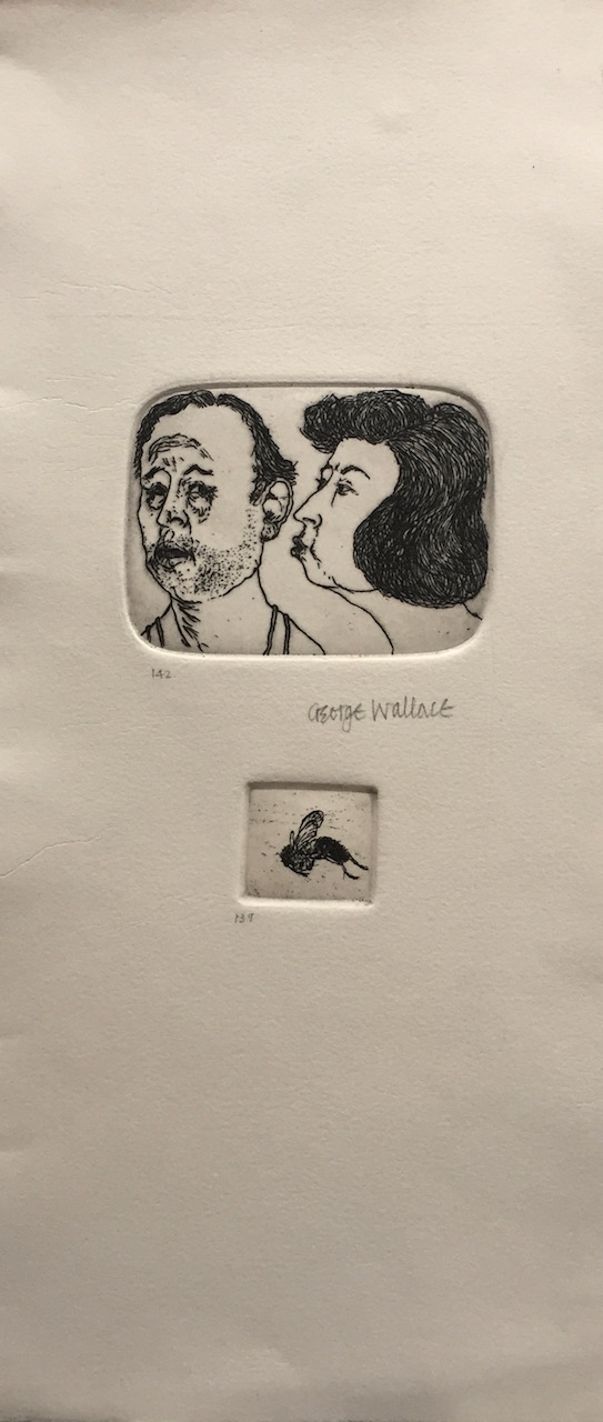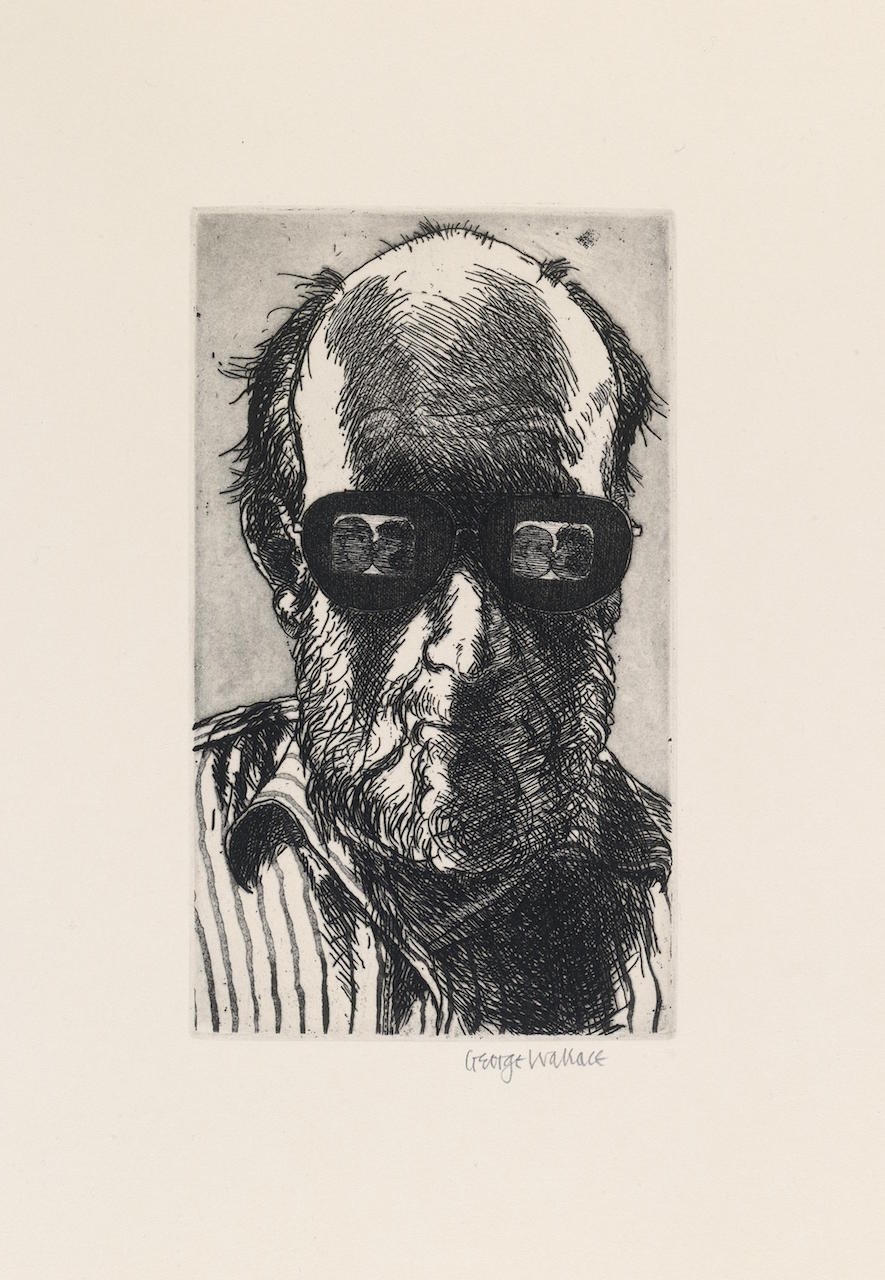 image ⓒ National Gallery of Ireland#141 - A Disagreement, decoration on inside fold, 1995, etching, 8 x 10.5 cm.#143 - Self Portrait with Dark Glasses, 1995, etching & aquatint, 22 x 13 cm. —
