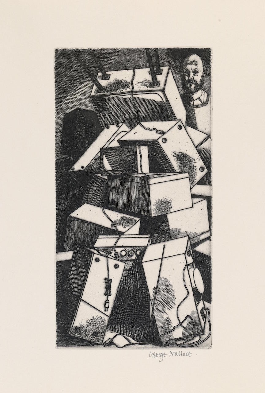 image ⓒ National Gallery of Ireland#152 - Evening Meal or the Apotheosis of TV, plate #10, 1995, etching & aquatint, 30.8 x 19.5 cm. —