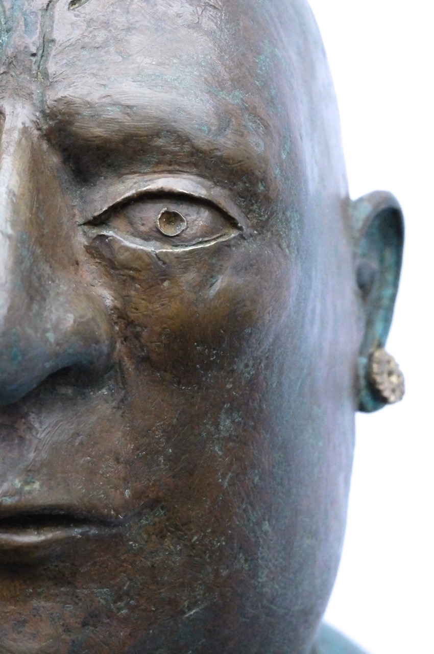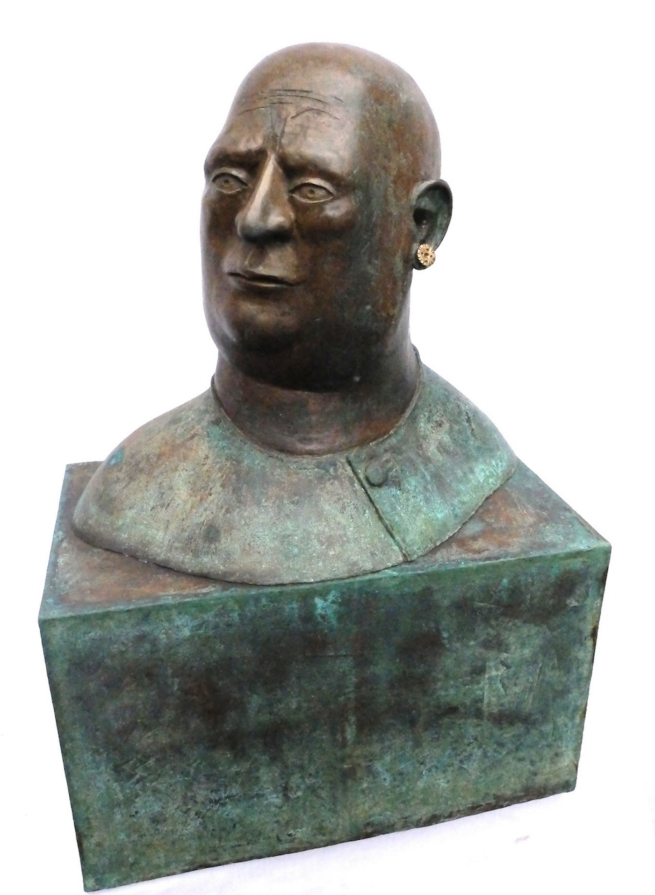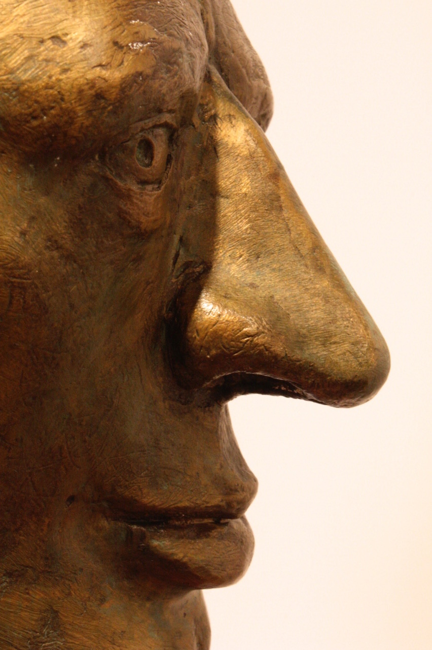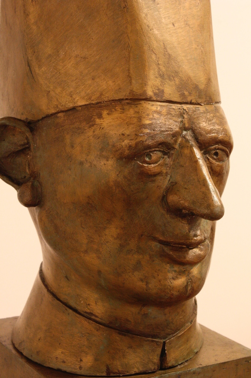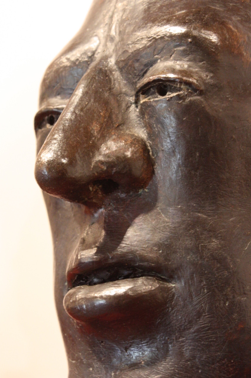 The bronze heads in “Ten Characters from a Spanish Comedy” reference the Commedia dell’arte of the 16th century Catholic Europe. Humour and the use of head dress to identify stock characters, allowed the theatre of political commentary to go unscathed in a time of repressive regimes. Outsize hats would continue to identify villains and bald pates buffoons in the theatre of the absurd and in political cartoons well into the 19th century. In Commedia dell’arte women’s roles were played by women for the first time.
