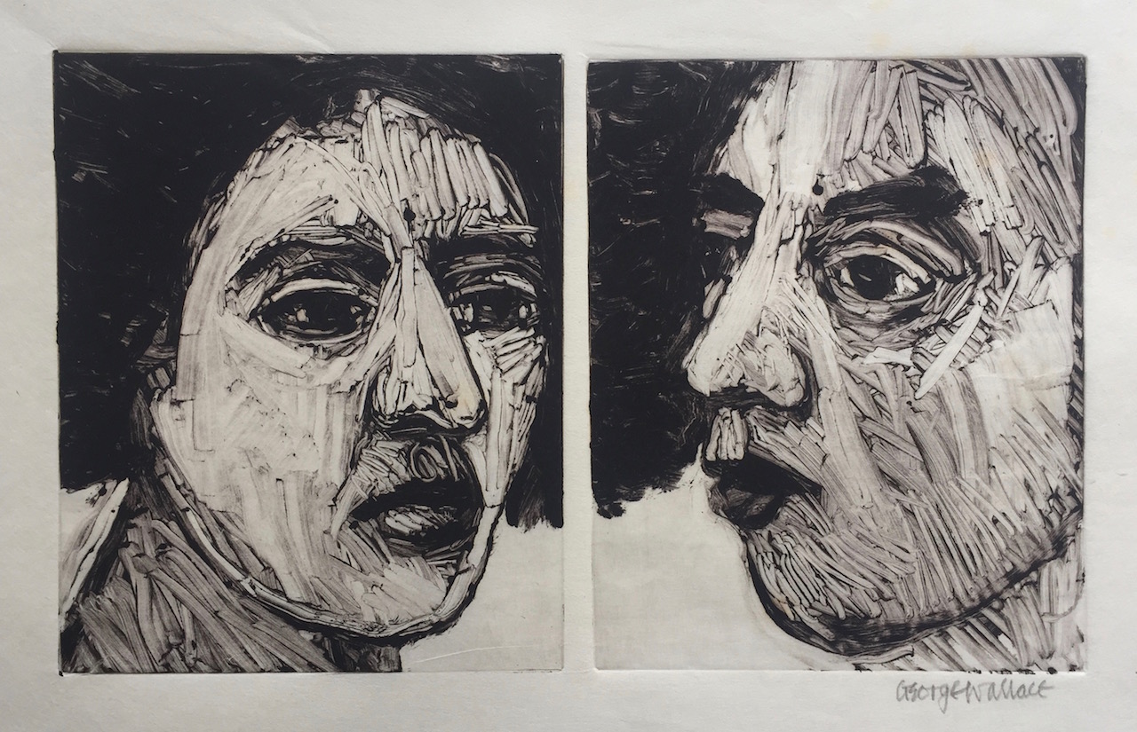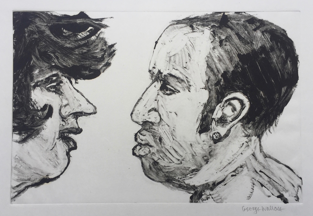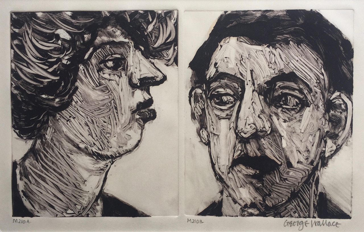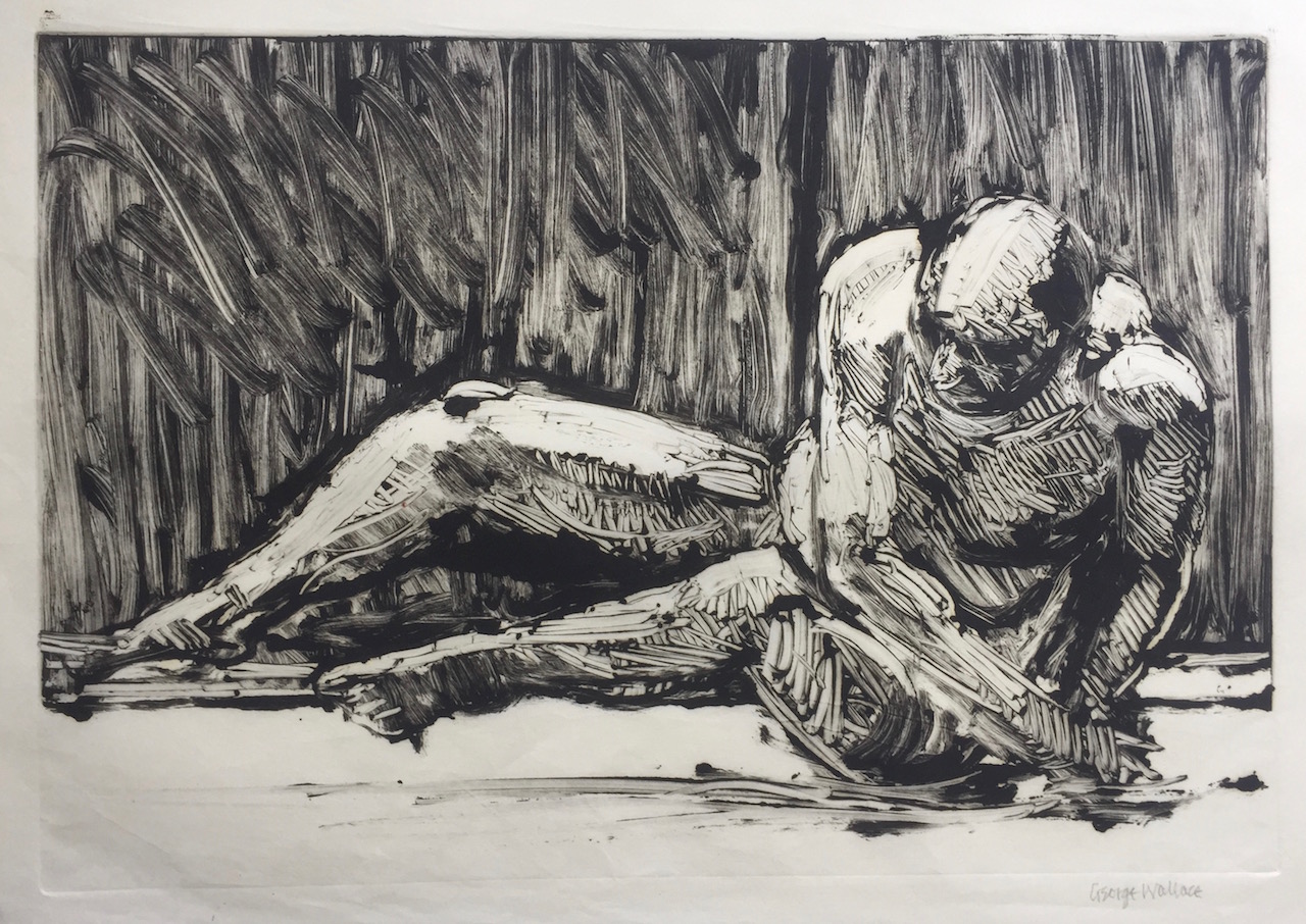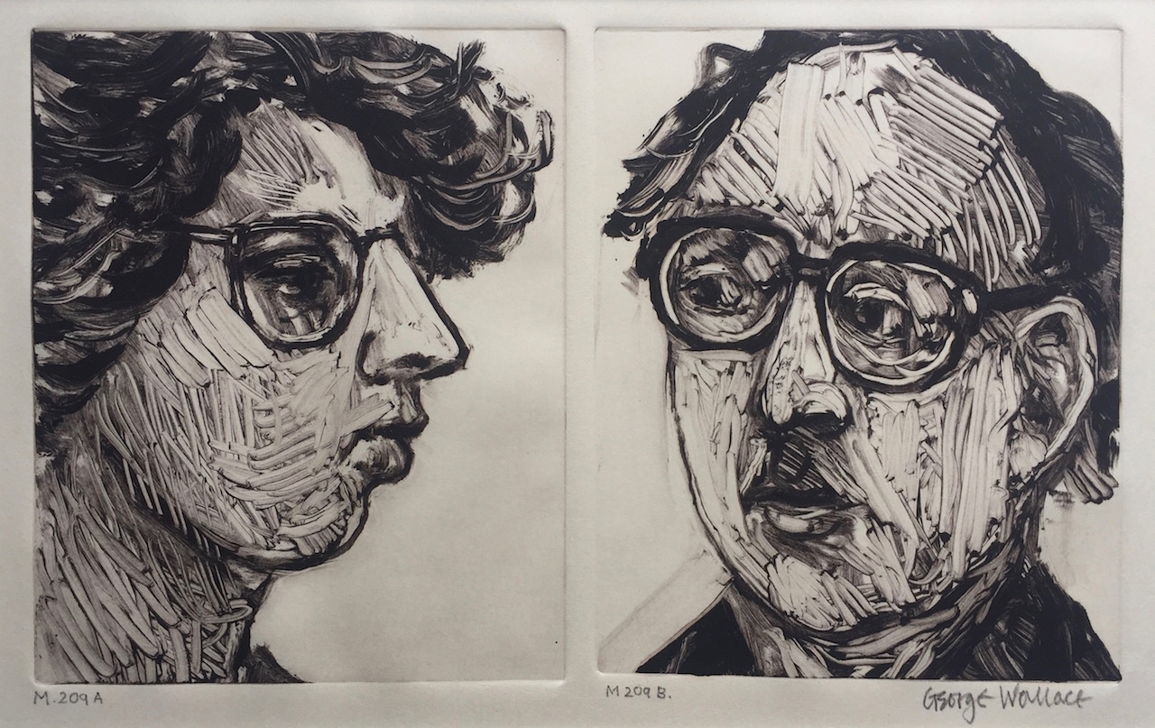 George Wallace retired to Victoria, British Columbia in 1985. Though he had printed a few monotypes in Falmouth early in his career, he started to vigorously explore this medium after retirement. He records that he had made over 400 monotypes between 1988 and 2005, a selection of which is shown here.
