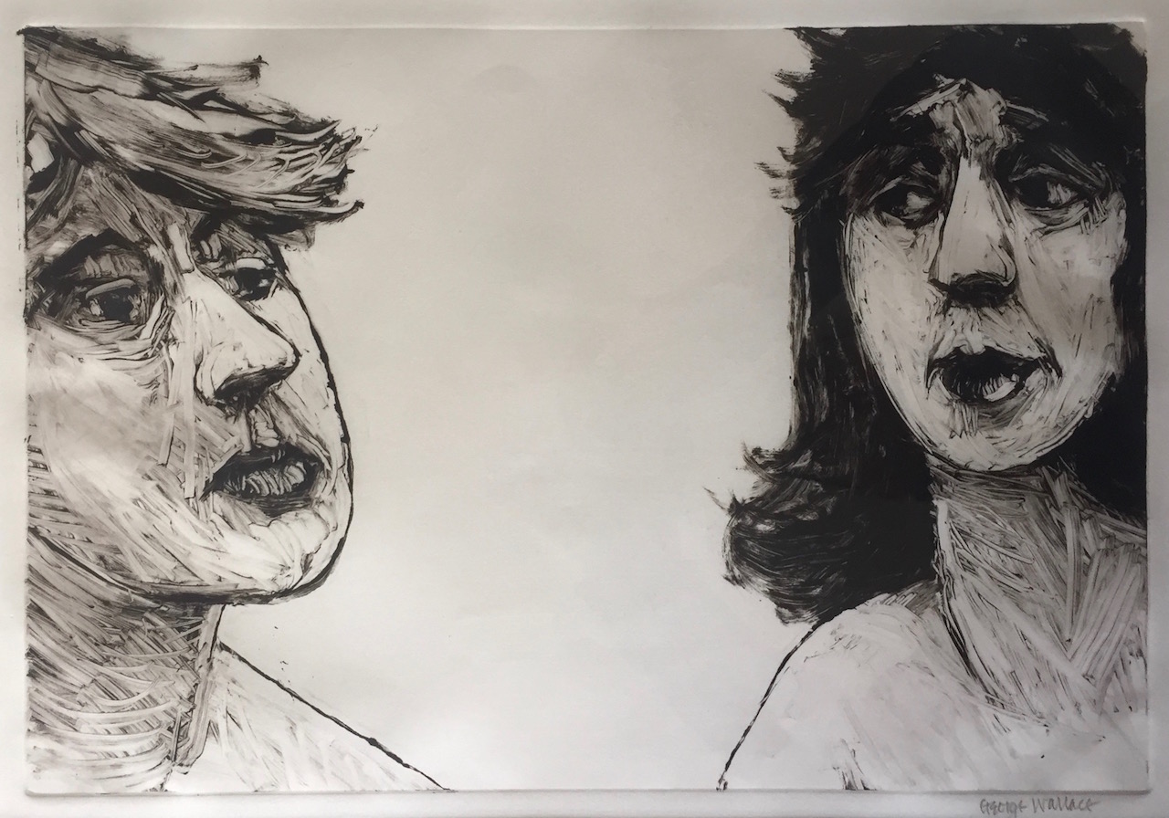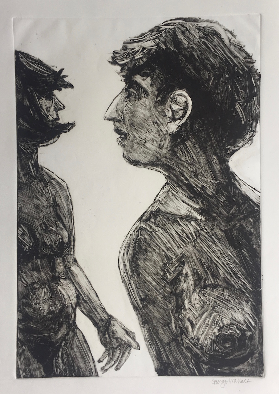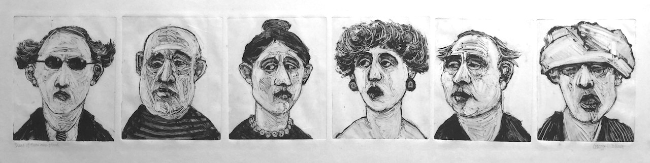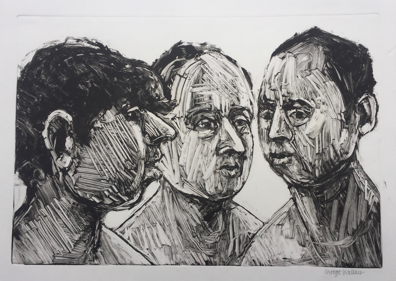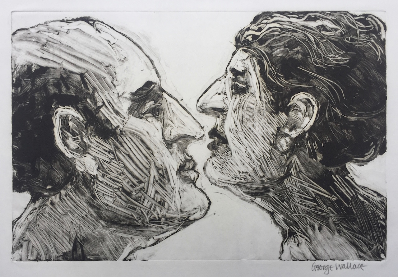 George Wallace retired to Victoria, British Columbia in 1985. Though he had printed a few monotypes in Falmouth early in his career, he started to vigorously explore this medium after retirement. He records that he had made over 400 monotypes between 1988 and 2005, a selection of which is shown here.