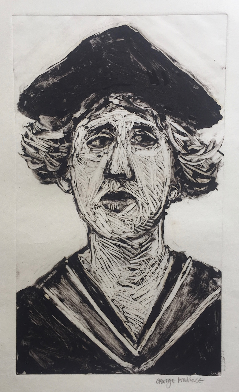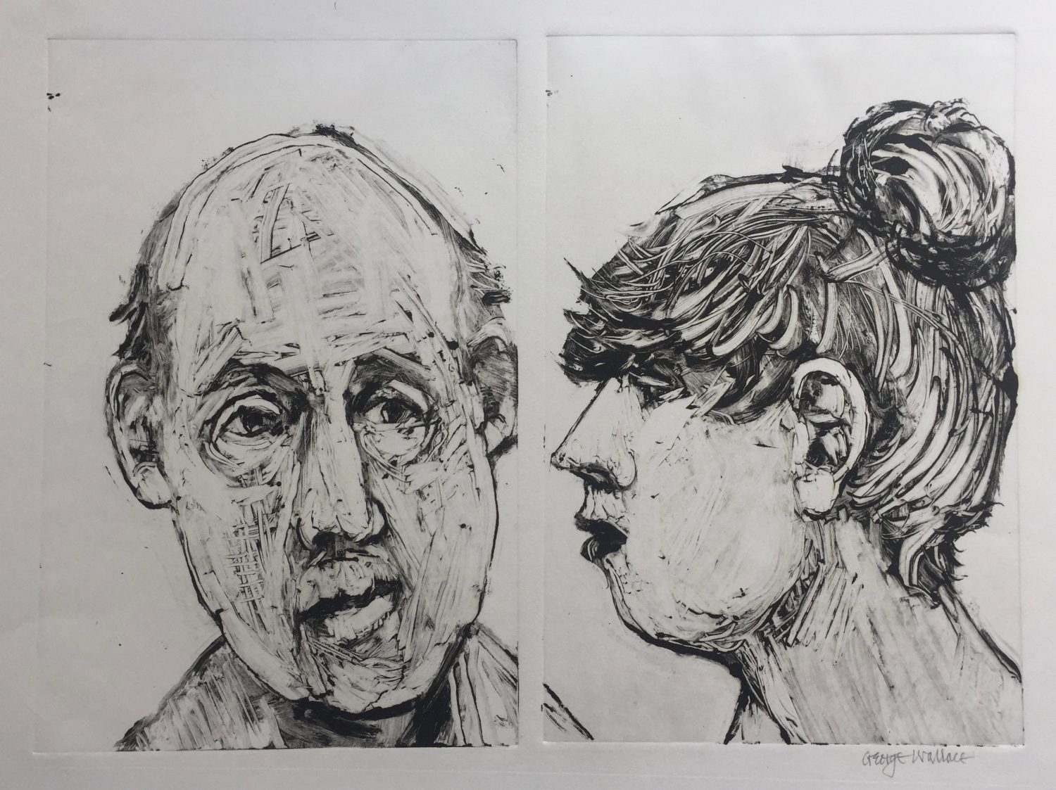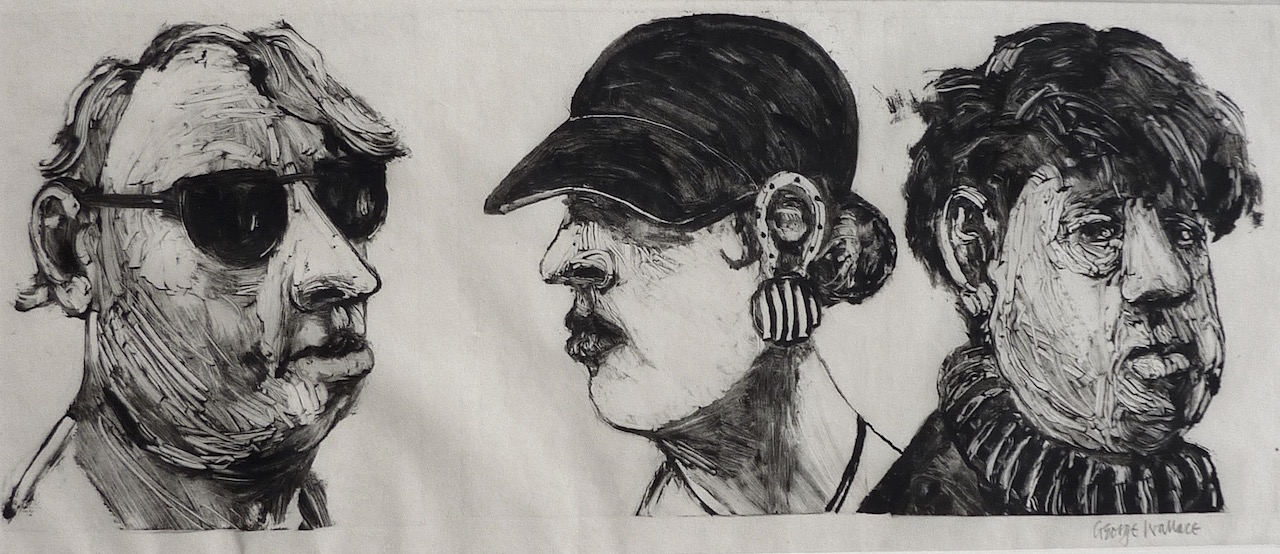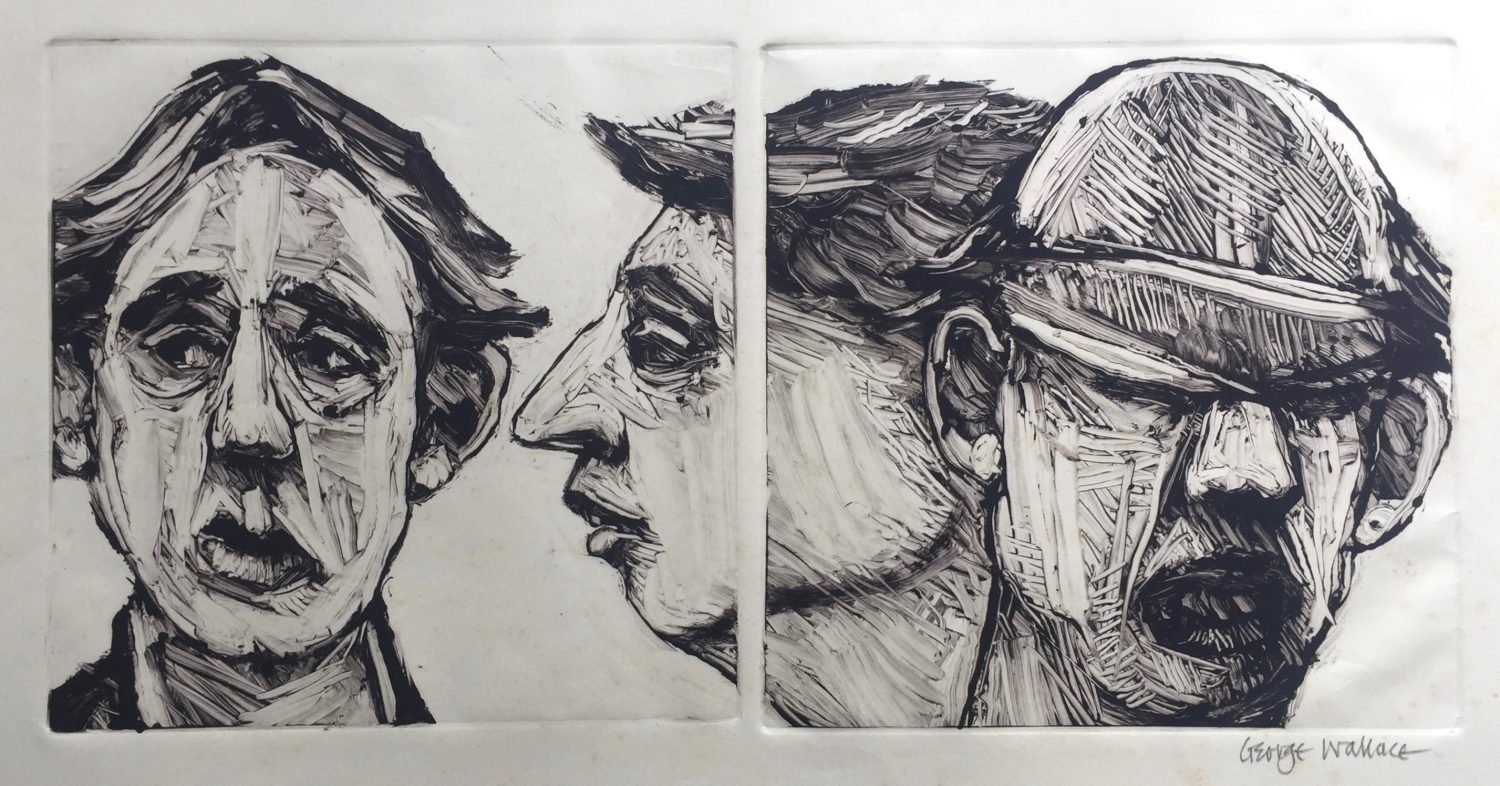 George Wallace retired to Victoria, British Columbia in 1985. Though he had printed a few monotypes in Falmouth early in his career, he started to vigorously explore this medium after retirement. He records that he had made over 400 monotypes between 1988 and 2005, a selection of which is shown here.