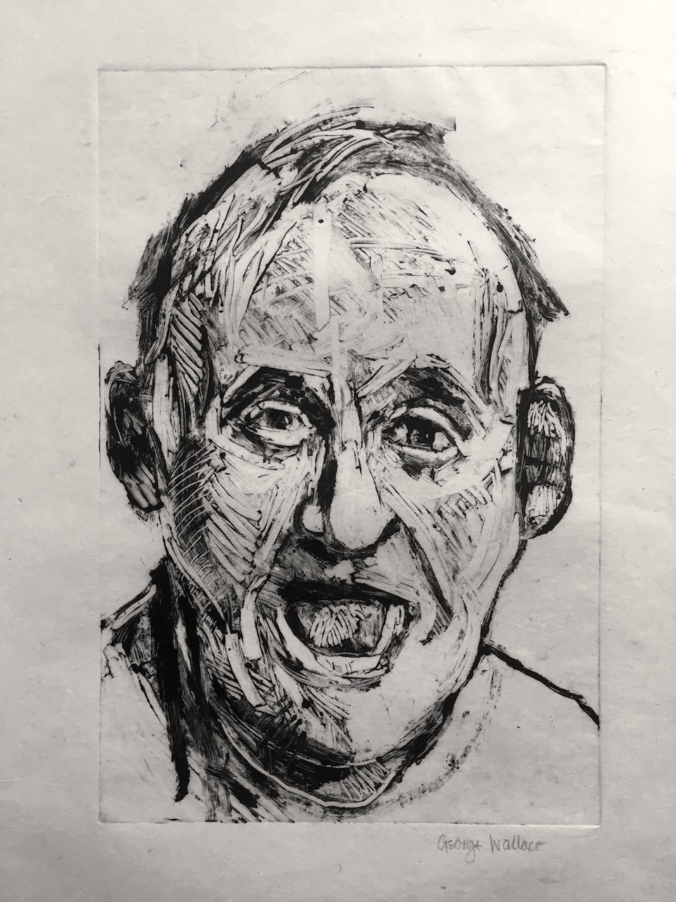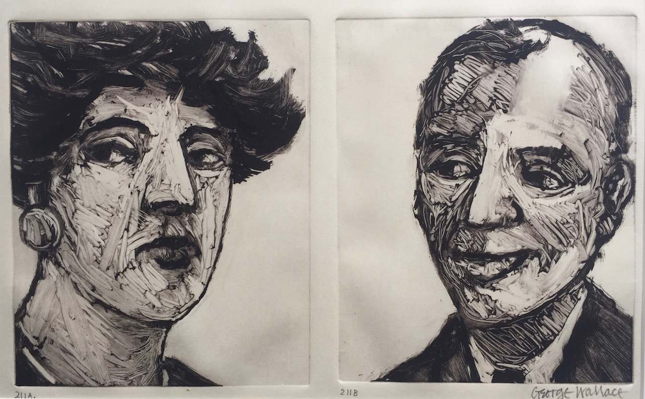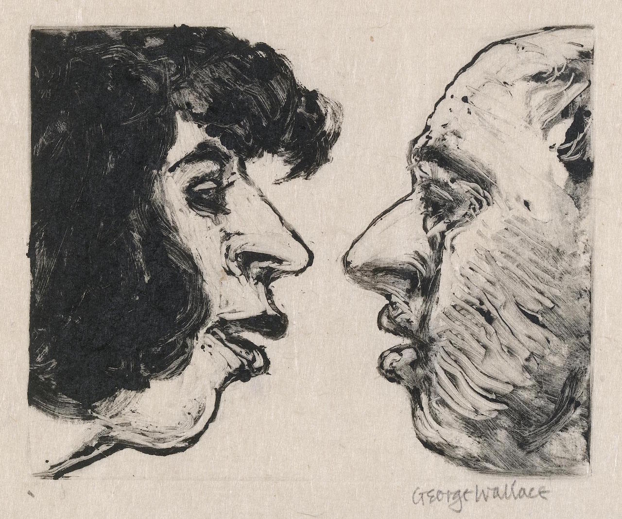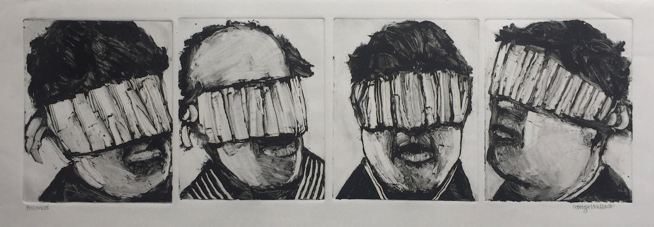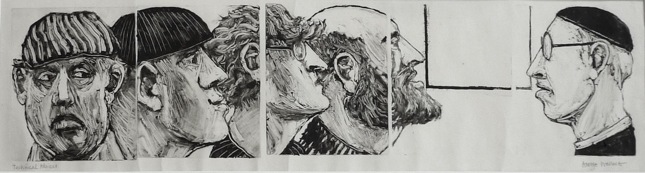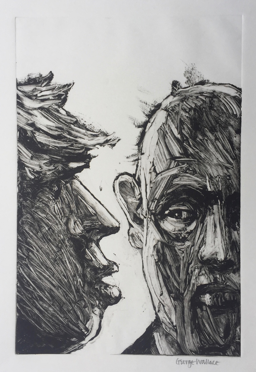 George Wallace retired to Victoria, British Columbia in 1985. Though he had printed a few monotypes in Falmouth early in his career, he started to vigorously explore this medium after retirement. He records that he had made over 400 monotypes between 1988 and 2005, a selection of which is shown here.